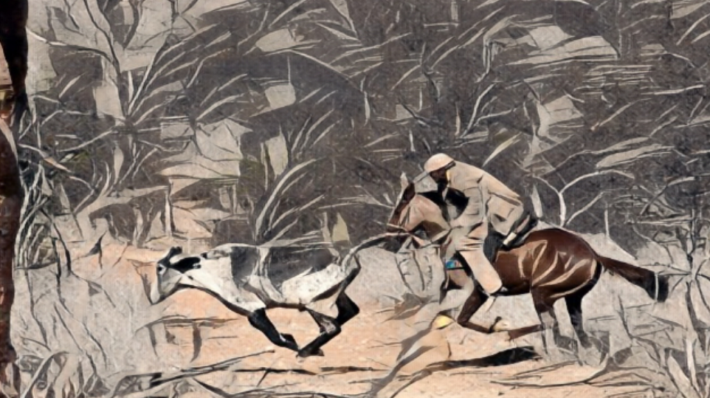 Soube-se depois como tudo aconteceu… O boi fôra capturado na primeira corrida. Mas não sem glória! Foi uma corrida de seis horas sem parar! Rosto rente ao pescoço de “Azougado” rastejando na batida, Zé Rogério, seguido pelo Major e dos demais companheiros, deram uma prova do valor e da coragem dos nossos vaqueiros, dos tal filhos desta terra!…